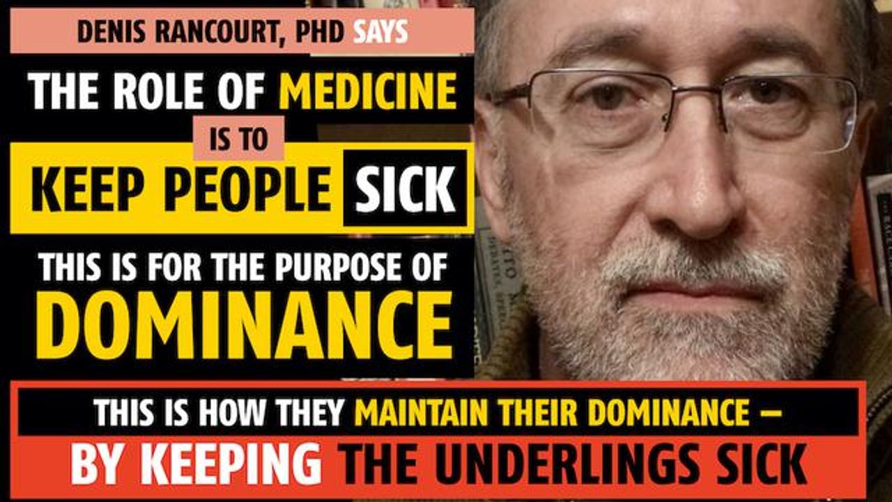 “The role of medicine as an institution in our society is to maintain the dominance hierarchy, is to keep people sick and to put them in their place,” Denis Rancourt, PhD tells Alex Jones on Jan 9, 2024. “The medical establishment is a leading cause of death…” “Medical errors and prescription [drugs] and… accepted treatments are HUGE KILLERS.” “It is the third leading cause of death in the Western world.” “It is structurally made that way.” “Psychological stress… ”When you lose your job, when society is being transformed because of a war... makes you more vulnerable to [ getting sick ].” “As social animals… we maintain a dominance hierarchy, and that dominance hierarchy is maintained by constant aggression by the dominant [animals], and that aggression produces chaotic stress, and that stress depresses your immune system… and makes you more vulnerable to [ getting sick ].” “That is why the lower strata of society… die sooner. “This is by design.” “This is how dominance hierarchies… maintain [their dominance]… they keep the underlings sick.”
