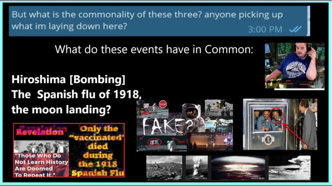 What do these events have in Common: Hiroshima [Bombing], The Spanish flu of 1918, the moon landing?