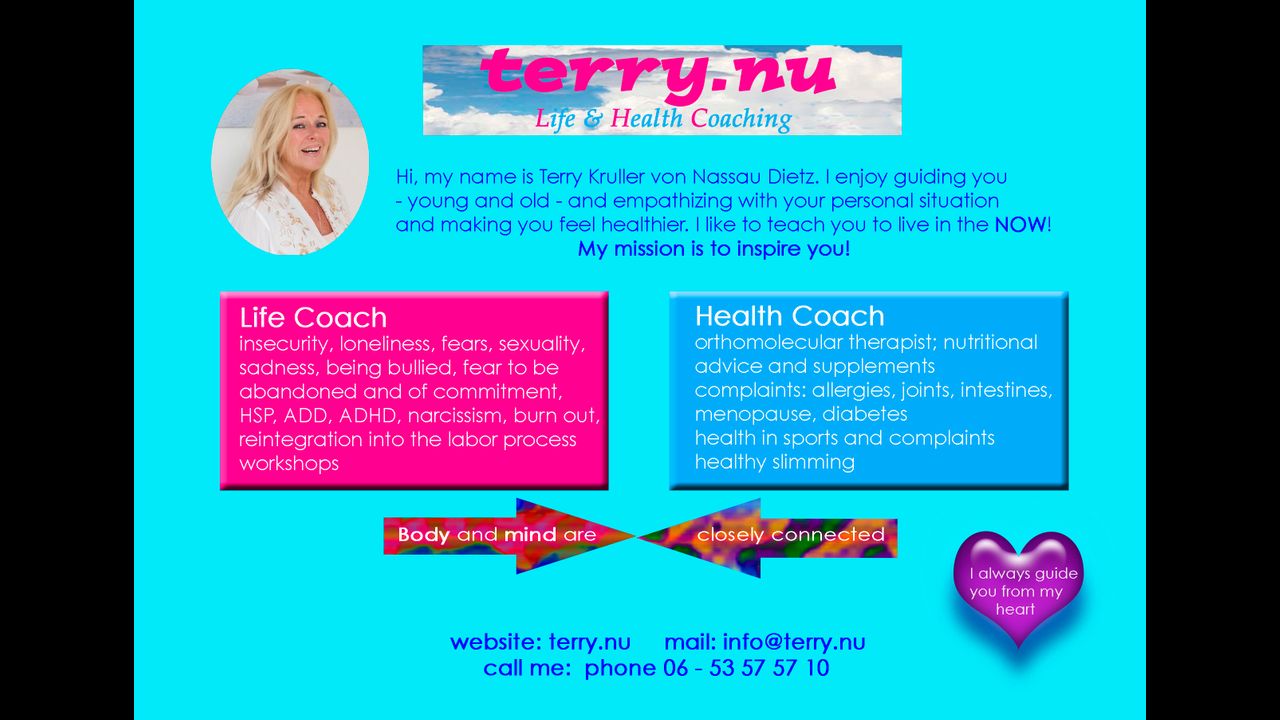 Life and Health Coach: Terry.nu gives you online advise as well.
