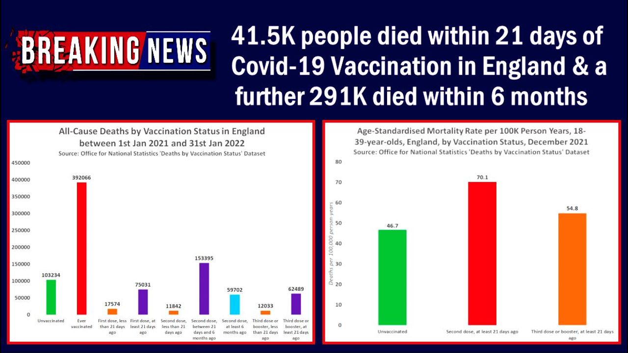 41.5k People Died Within 21 Days Of Covid Vaxx In England & A Further 291k Died Within 6 Months