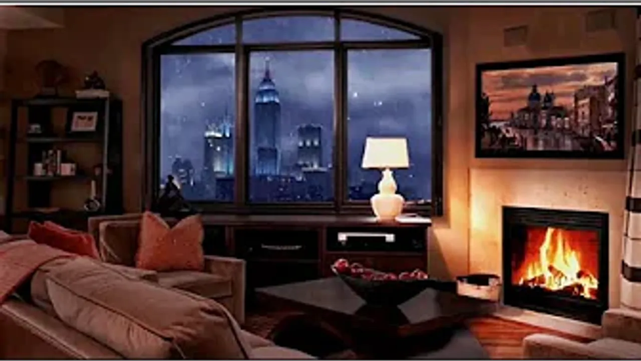 Winter Ambience New York of 1940s with Fireplace & Music