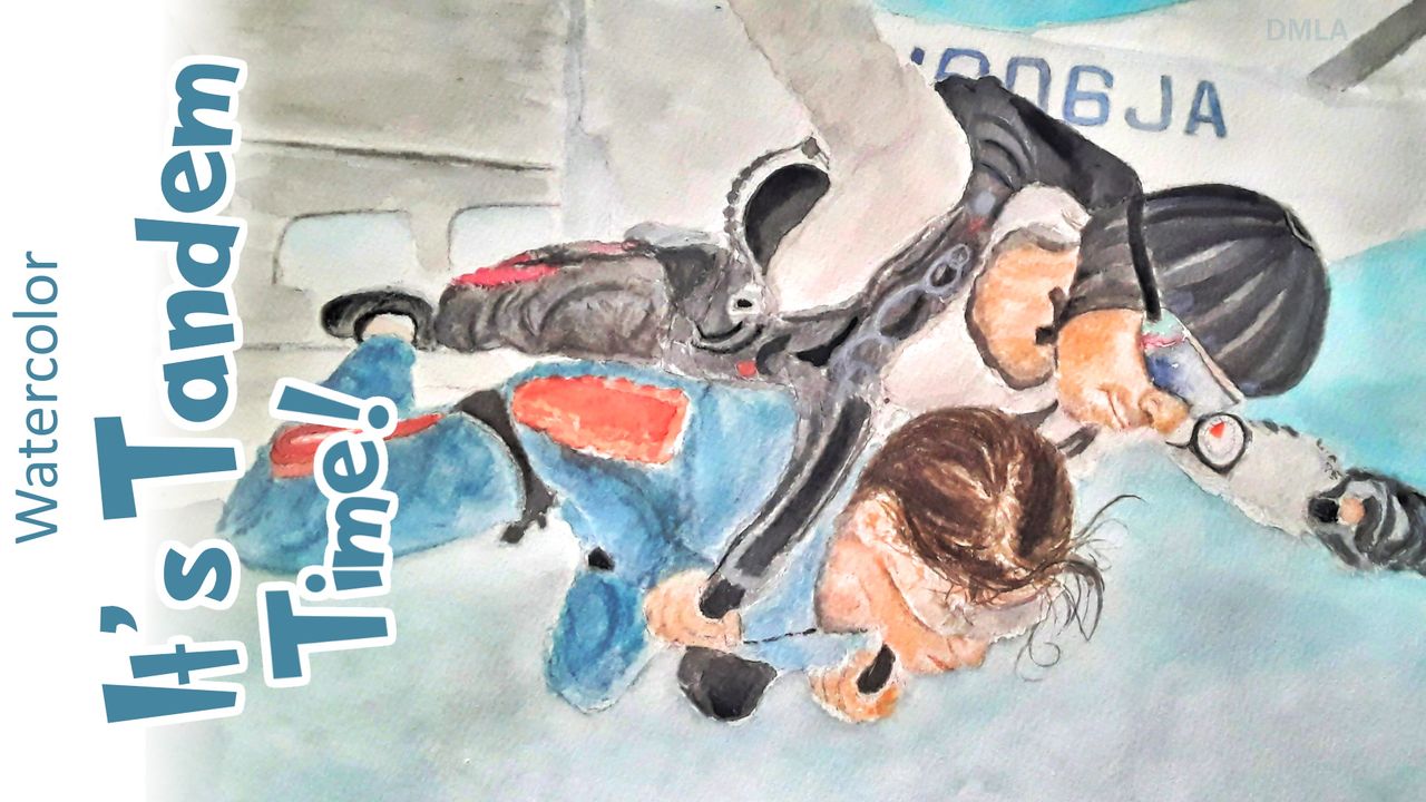 #watercolor #tutorial #sky #people #clouds #airplane #skydiving #clouds #clothes #man #girl #parachute