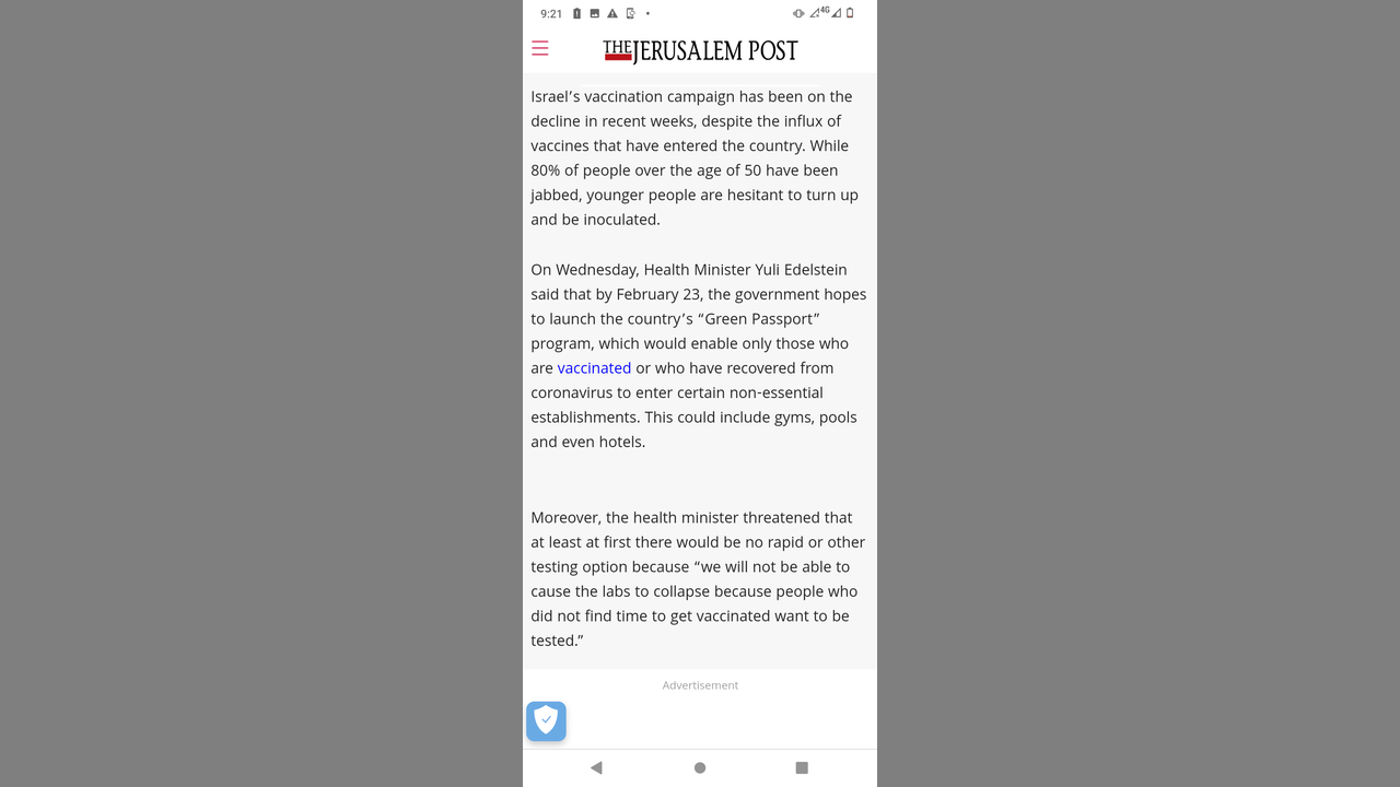 Israel becomes a prison, main airport remains closed while the gov creates the first vaccine passport, all beginning in ten days