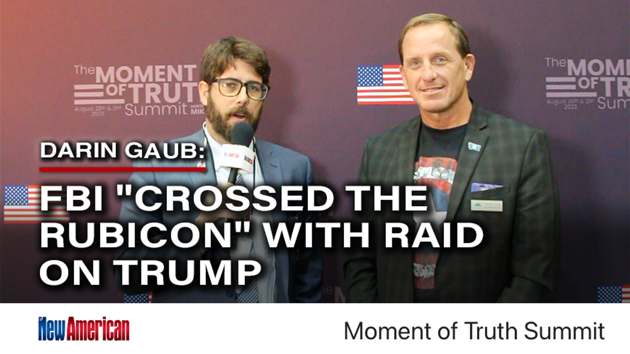 The Biden FBI's "political hit job" on the leading 2024 GOP candidate for president is tantamount to "crossing the Rubicon," warned Darin Gaub, director and spokesman for the organization Restore Liberty, in this interview with The New American magazine's Alex Newman. In other words, like Caesar committing treason when he crossed the Rubicon river to Rome with an army behind him, the FBI has done something that can never be undone. As such, Americans must take a number of steps to rein in this lawlessness. These measures include having sheriffs and governors interpose between the federal government and citizens, ending dependance on federal tax money with its strings attached, and more. If actions to bring the situation under control do not happen, America is in major trouble, he warned. That is why his organization is helping get good candidates elected at every level while working to rebuild America's constitutional, biblical and moral foundations.