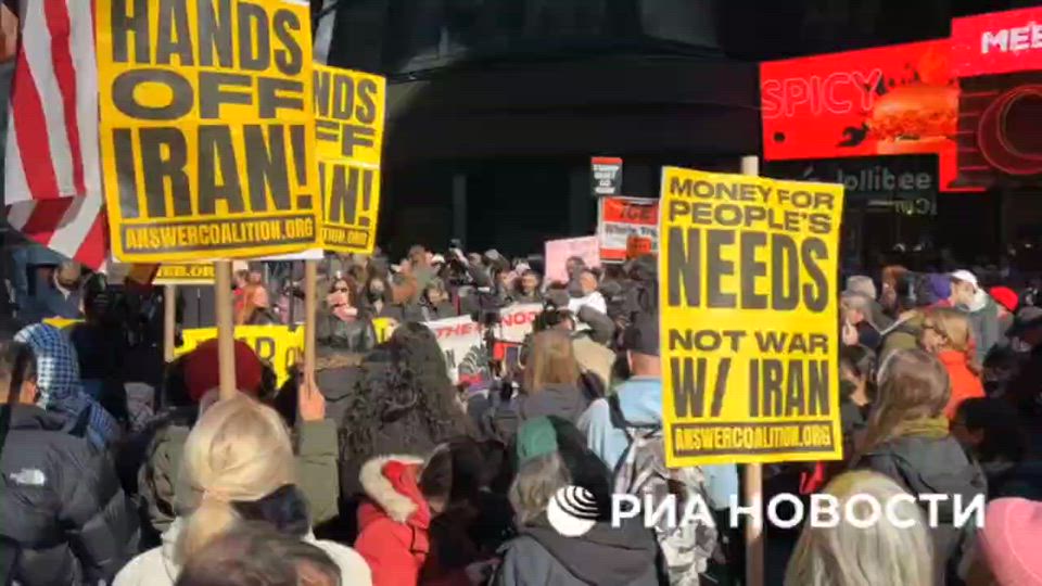 Hundreds of people gathered in Times Square in New York on Saturday to protest against the US and Israeli military operation in Iran, reports a RIA Novosti correspondent.