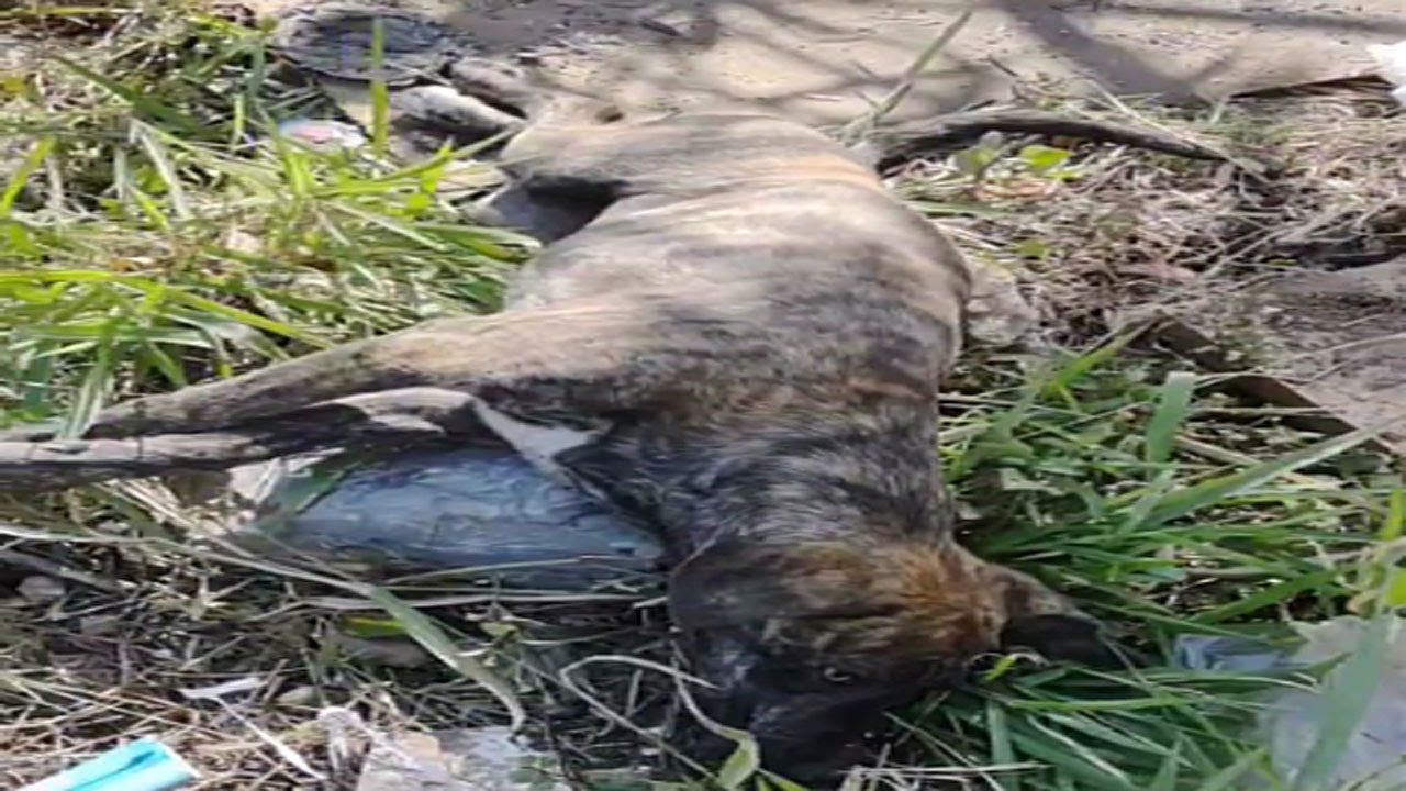 The dog laid there alone and alone, he could no longer sit and teach to eat or drink