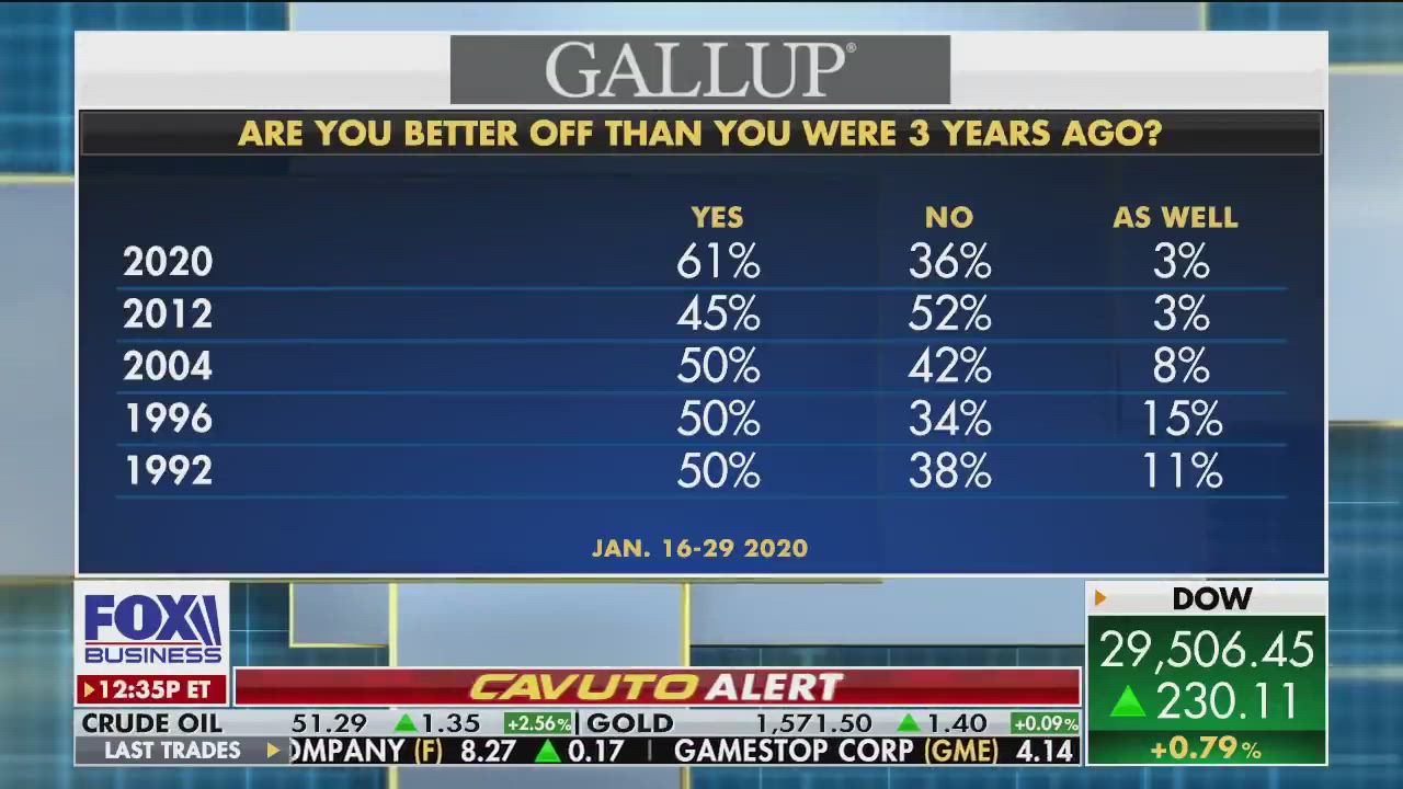 61% of Americans say they are better off now than three years ago: Poll