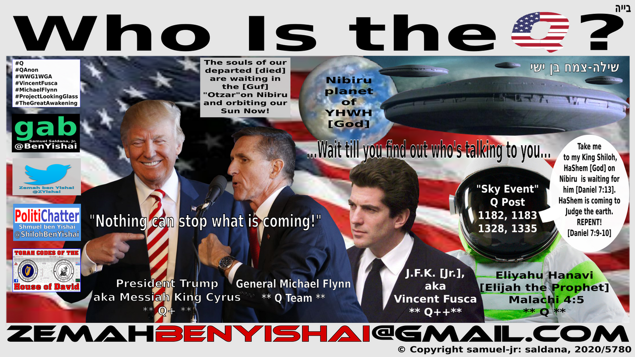 Thank you for visiting my channel. This Video is called: "Q" Is Eliyahu HaNavi [Elijah the Prophet] and he is working with President Trump aka code name "Messiah King Cyrus II" and JFJ.jr [Alive] and will reveal himself soon.