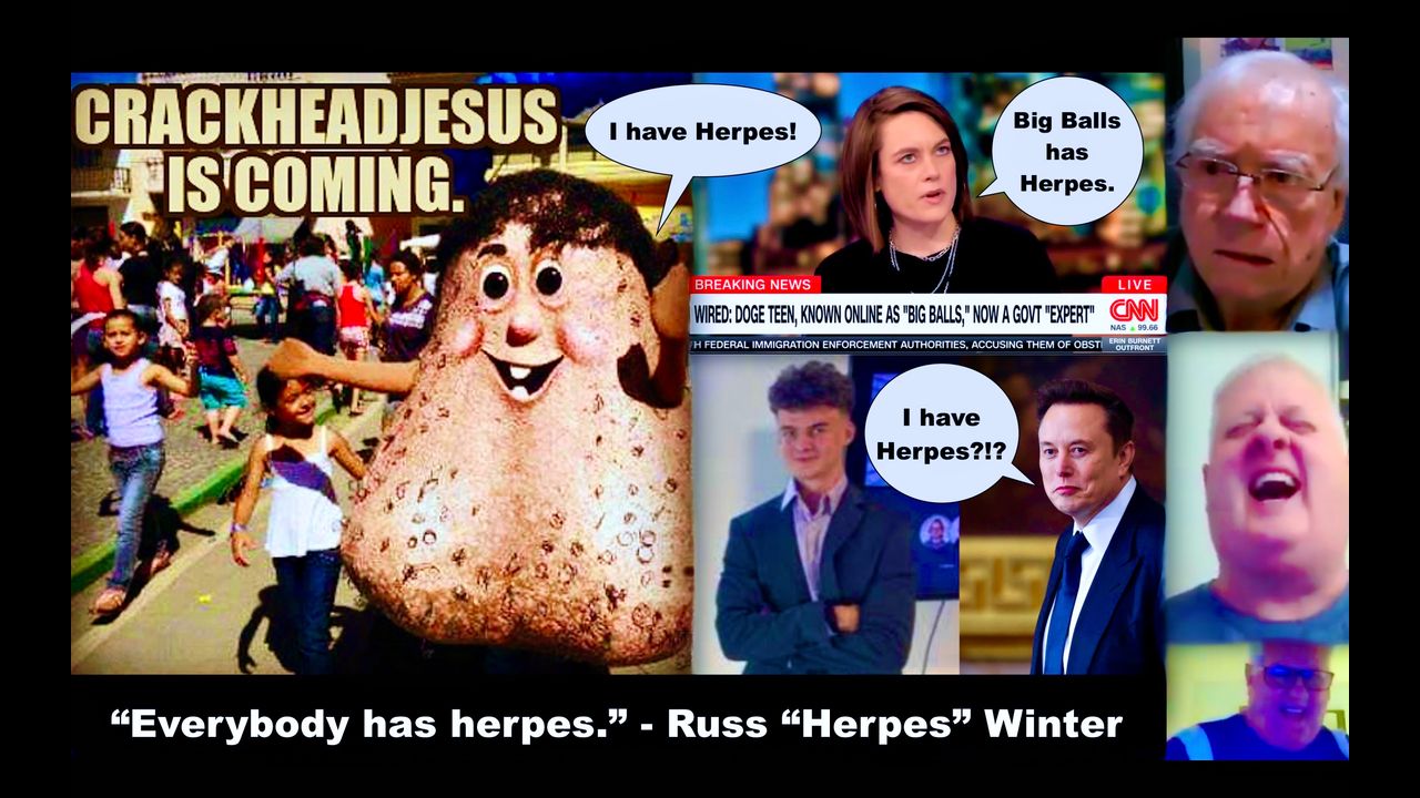Everybody has Herpes Including Elon Musk and Big Balls, claims Russell "Herpes" Winter turning Jim Fetzer, Russell "Herpes" Winter, "Crying" Brian Davidson and Joachim Jagopian into Punchline of Running Joke.