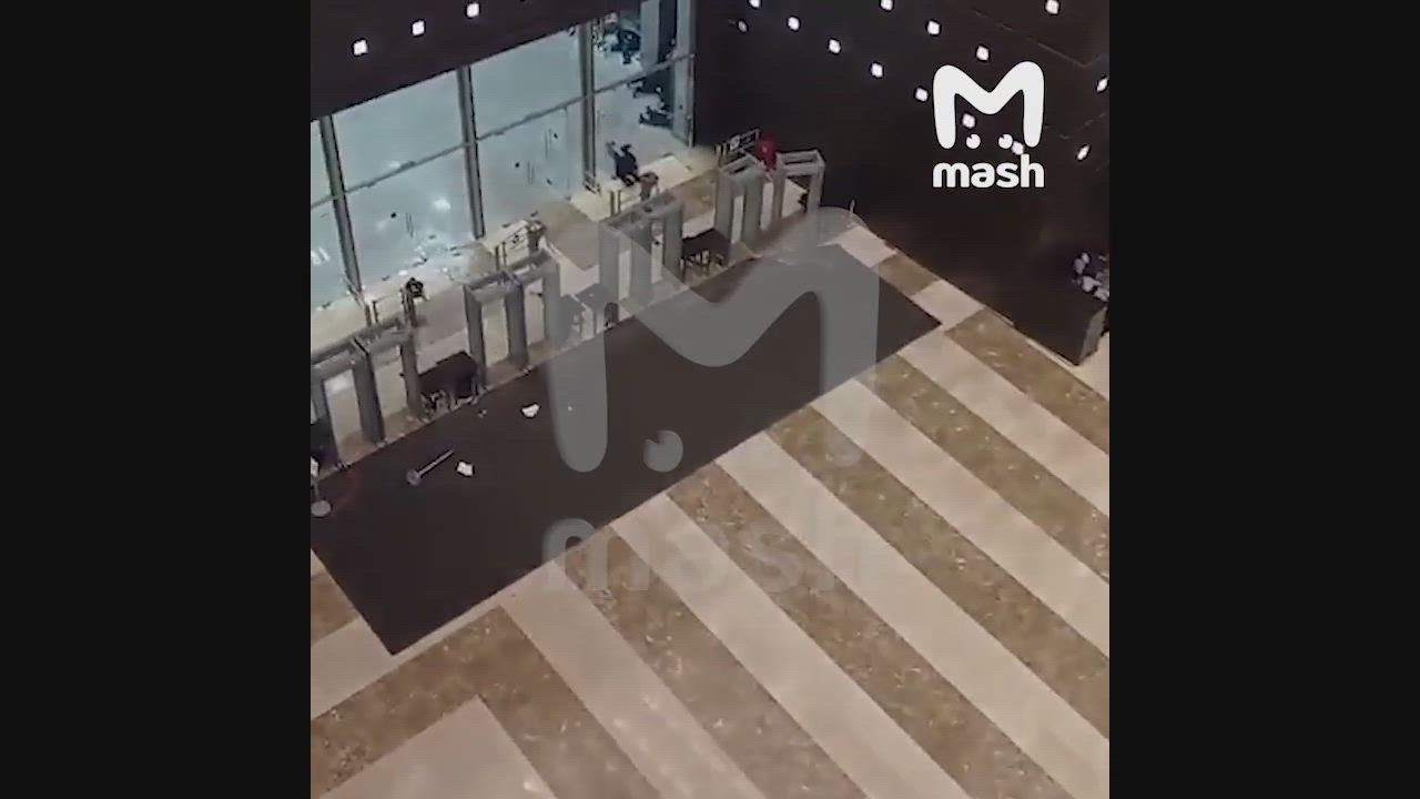 ❗️The moment gunmen breach the entrance to Crocus City Hall shopping Centre in north west Moscow killing security guards and innocent bystanders in cold blood. 🇷🇺🙏