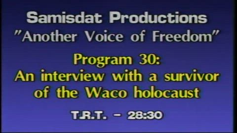 This is the thirtieth episode in the "A Voice Of Freedom" series titled - A Waco Survivor Interviewed By Ernst Zündel - produced by Samisdat Publishers and directed by Ernst Zundel.