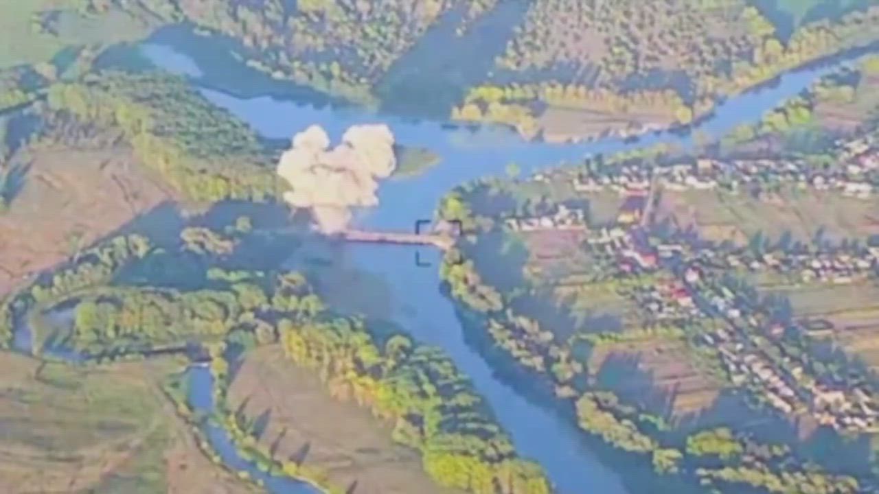 The enemy has published footage of an attack on another bridge across the Seim River in the Kursk region.