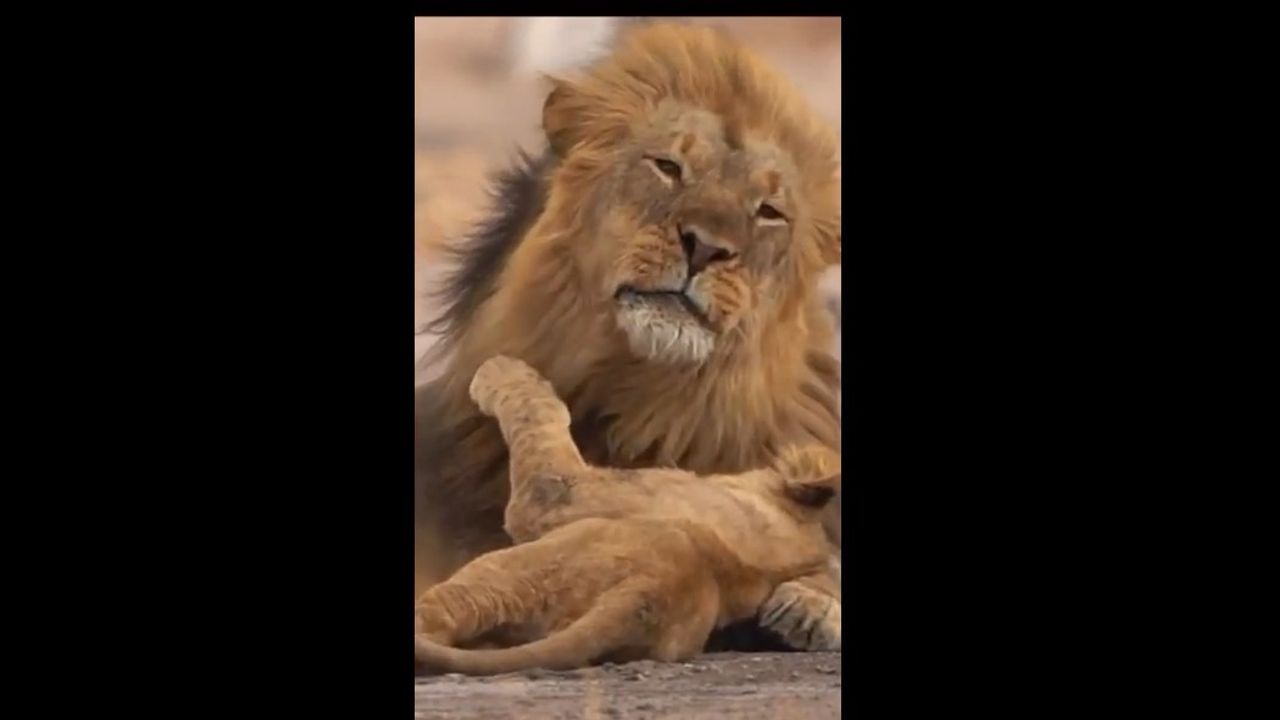 Father & Son - Young Lion Cub Enjoying Moments with Dad