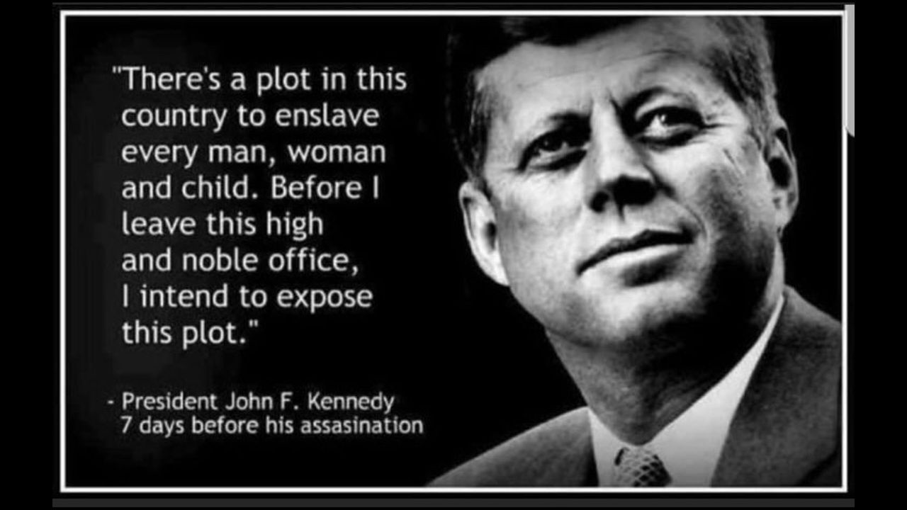 “There is a plot in this country to enslave every man, woman and child.”Before I leave this high and noble office, I intend to expose this plot." John F. Kennedy assassinated 11/22/1963 59 years ago.