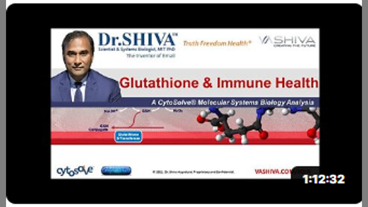 In this presentation, Dr.SHIVA Ayyadurai, MIT PhD, Inventor of Email, Scientist, and Engineer, analyzes Glutathione effects on Immune Health. Full Blog Post: https://vashiva.com/why-glutathione-the-master-anti-oxidant-boosts-immunity-a-cytosolve-systems-analysis/