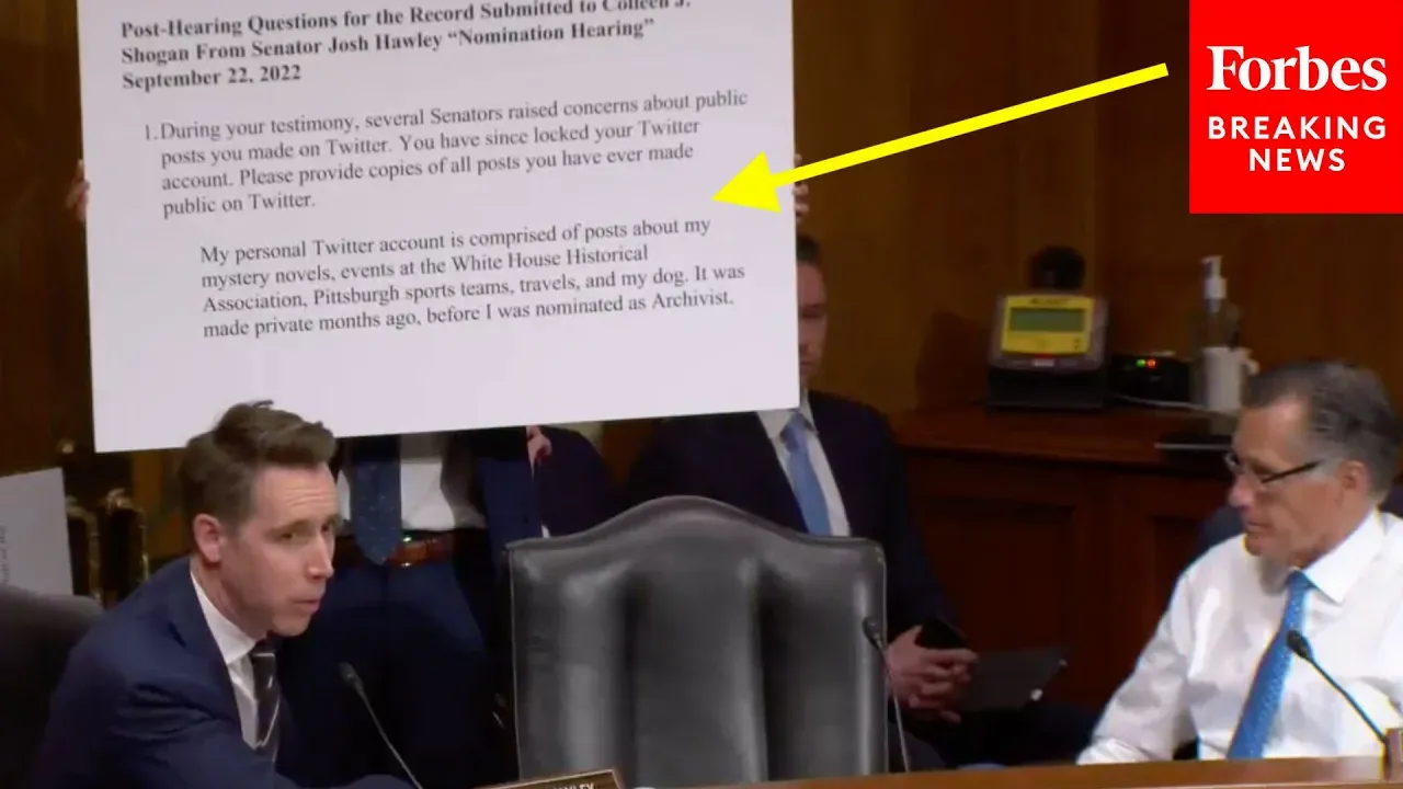 At today's Senate Homeland Committee hearing, Sen. Josh Hawley (R-MO) slammed National Archivist nominee Colleen Shogan's answers to him from prior hearings and in writing.