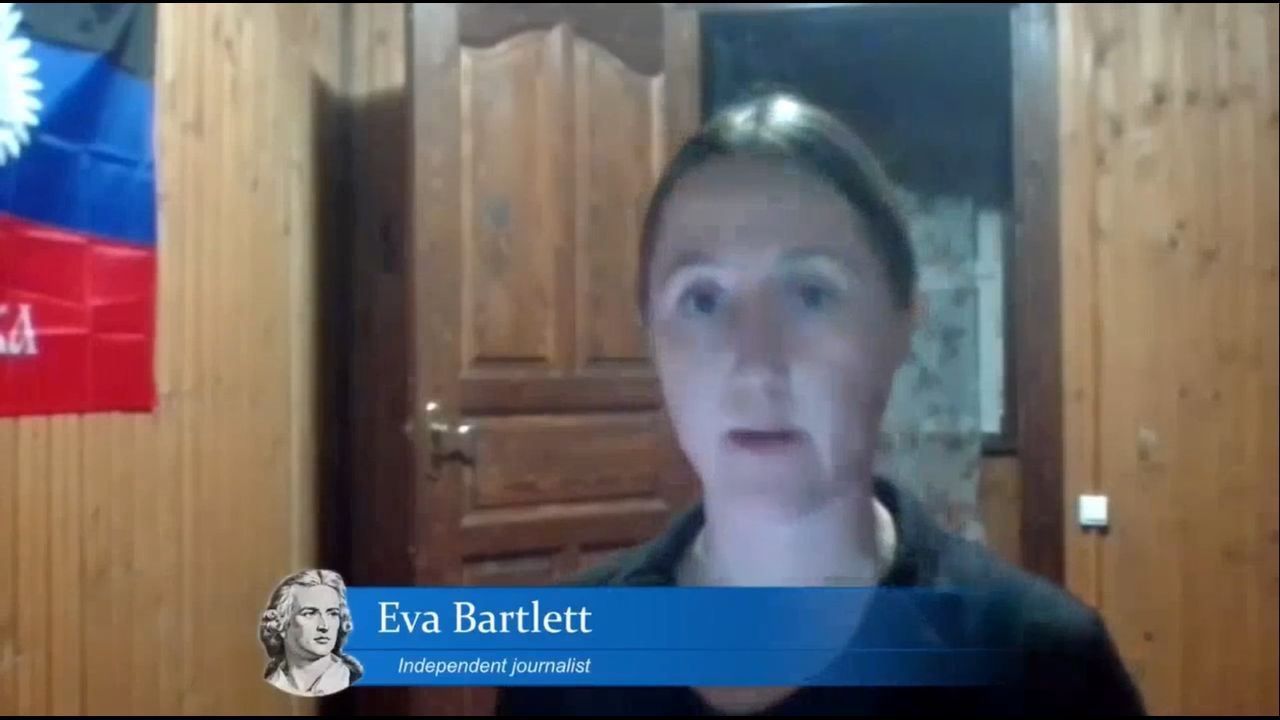 "Addressing the EIR Symposium, "Peace On Earth, Or Humanity's Doom? The Case For Negotiations," Canadian journalist Eva Bartlett, who was granted the 2017 International Journalism Award by the Journalists’ Club of Mexico and has spent years doing on-the-ground reporting of wars in the Middle East, gave an eyewitness account of the ongoing genocide against the people of Donbass, where she has been reporting for the last year. Since 2014, she reported, 12,500 civilians have been killed by sniping and shelling with NATO weapons in both the Lugansk People’s Republic and Donetsk People’s Republic, with over 4,500 killed since mid-February of this year. Given that civilian areas are targeted, this shelling constitutes terrorism and war crimes.