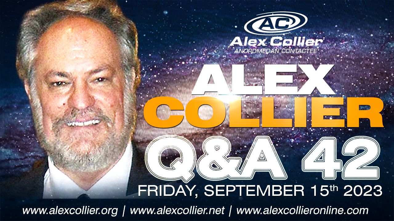 Alex hosted his 42nd *LIVE* Question and Answer webinar on September 15, 2023. The webinar was just over two hours and 40 minutes in length. This webinar included a 32-minute monologue where Alex talked a little about what was happening in the world, and then Alex answered questions for the remainder of the webinar. Hosted by James Harkin from AlexCollier.org and the former radio host for Wolf Spirit Radio JayPee. Alex presented great insight into what is happening in this world and beyond.