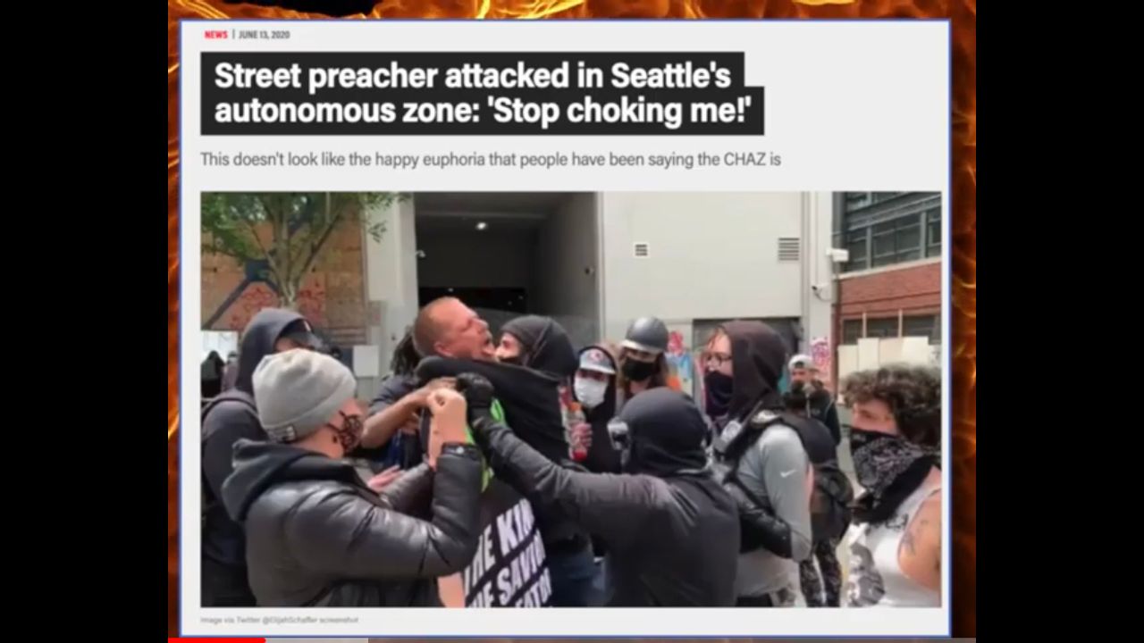 Portland Prayer March triggers Militant atheist anarchist antifa domestic terrorists, gets hit by car as he tries to escape from his victims.