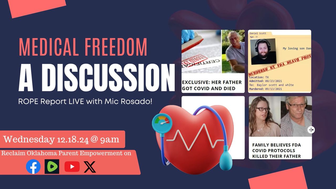 ROPE ('Reclaim OK Parent Empowerment') who has been fighting for individual liberty against government tyranny in Oklahoma since 2008, interviews Mic Rosado (a former nurse) about Medical Freedom.