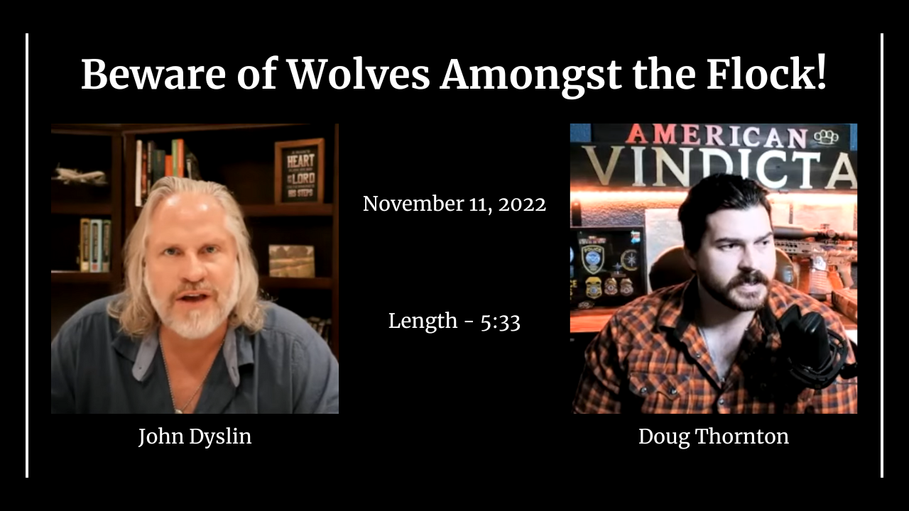 In this video segment John Dyslin, author of Nehemiah Strong, is interviewed by Doug Thornton of the American Vindicta Show. John speaks regarding the wolves in sheep's clothing that lurk inside the walls of many churches today. "The enemy doesn't stop creeping around at the threshold to the sanctuary of the church," says John, so we must be wary of Satan's devices!