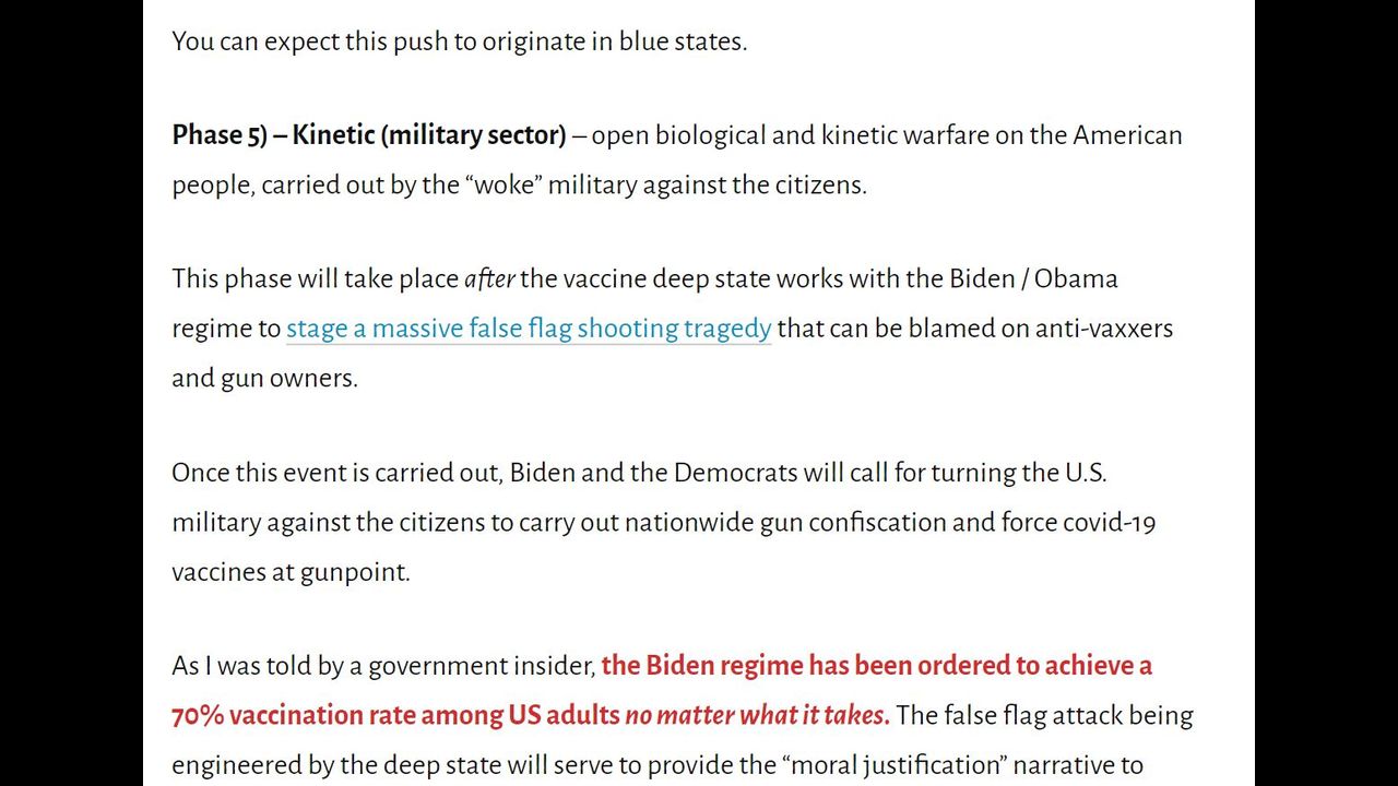 This phase will take place after the vaccine deep state works with the Biden / Obama regime to stage a massive false flag shooting tragedy that can be blamed on anti-vaxxers and gun owners.