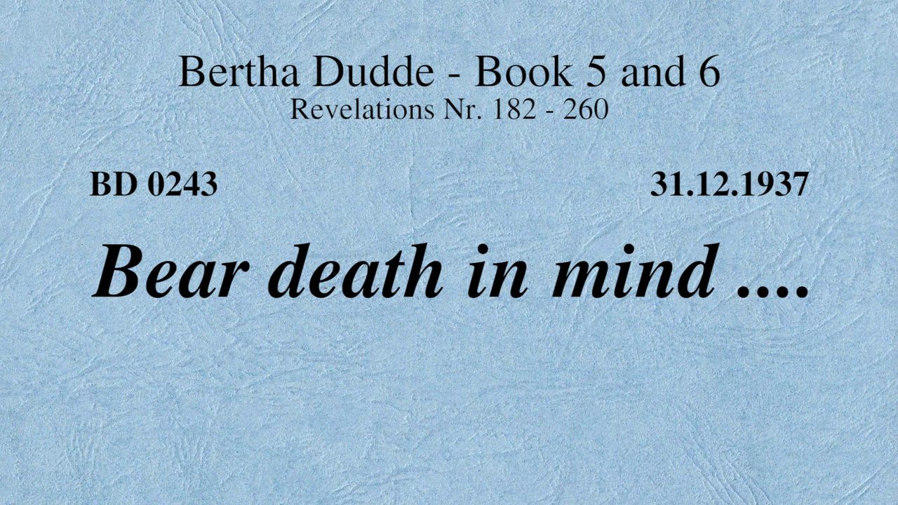 With these words the revelations of God to Bertha Dudde began on June 15, 1937, which found the conclusion on August 17, 1965 with the manifestation 9030 as a seal.