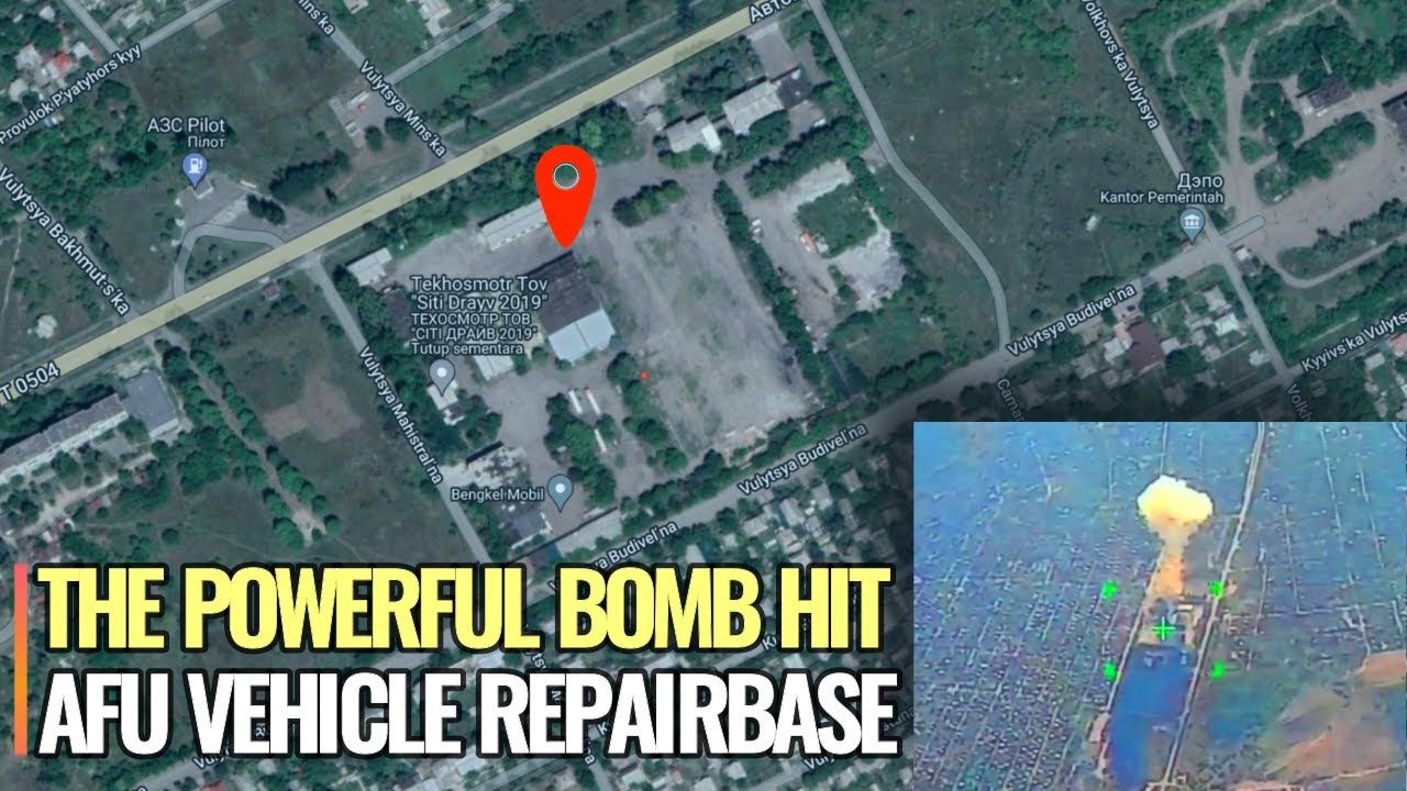 Military vehicle repairbase of Armed Forces of Ukraine in Konstantinovka was blown up by the bomb of Russian Air Force. FAB-500 bomb equipped with UMPK kit, hit and destroyed a repair base in Donetsk region in Artemovsk direction, and 10 Ukrainian soldiers were killed.