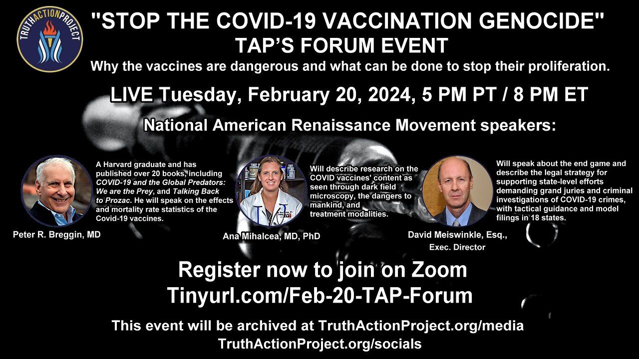 The COVID-19 vaccinations are the most deadly vaccines ever given to mankind. Find out why they are so dangerous and what can be done to stop their proliferation. Meet our speakers from the National American Renaissance Movement: