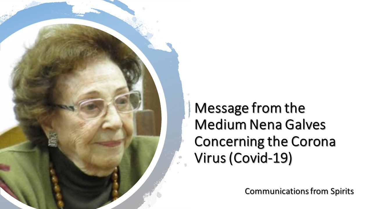 Below is a message from the “Centro Espirita Uniao” (Spiritist Union Center) in Sao Paulo, Brazil. It is from the medium Nena Galves concerning the current pandemic.