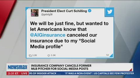 Former MLB All Star and World Series Champion Curt Schilling speaks to Newsmax TV about an evident "miscommunication" with his insurance company, and about how his social media posts and personal politics may have been involved. - via American Agenda with Heather Childers and Bob Sellers, weekdays at 2PM ET on Newsmax TV