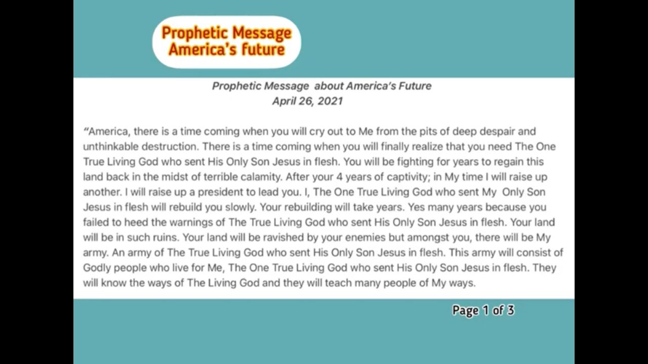 Prophetic Message about America’s future....(April 26, 2021)