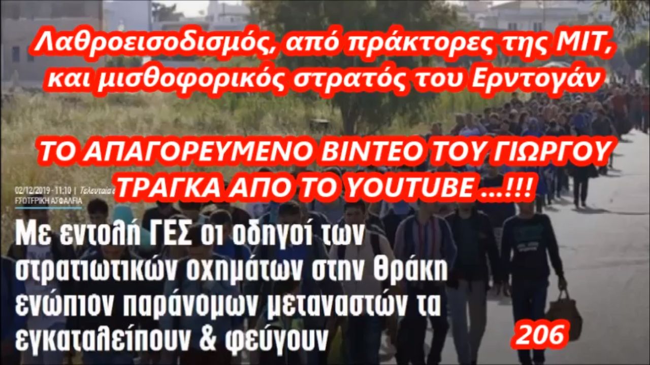 Λαθροεποικισμός - ο Μυστικός Στρατός του Ερντογάν στην Ελλάδα,απο πράκτορες της ΜΙΤ...ΤΟ ΑΠΑΓΟΡΕΥΜΕΝΟ ΒΙΝΤΕΟ ΤΟΥ ΓΙΩΡΓΟΥ ΤΡΑΓΚΑ ΑΠΟ ΤΟ YouTube...