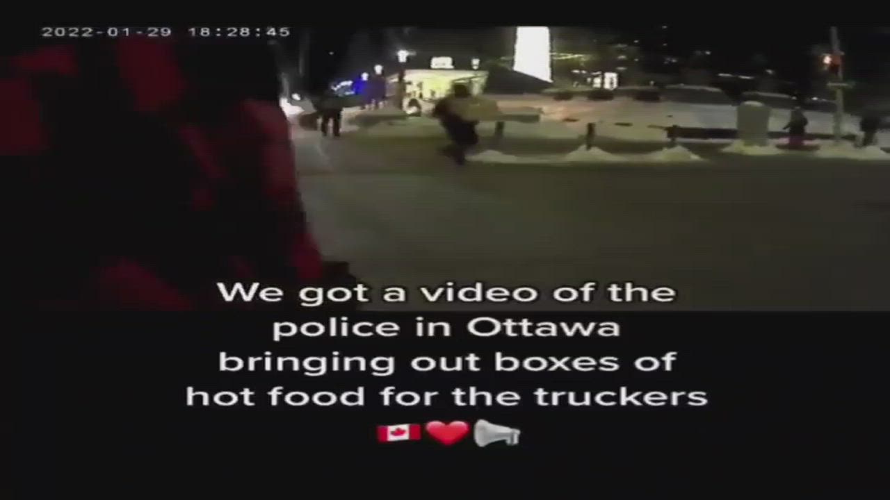 Police in Ottawa Bringing Boxes of Hot Food to Truckers