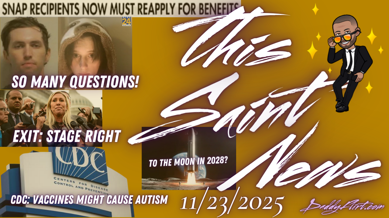 This week: There's a lot of stuff I gotta show you this week so we'll start with a few more news stories. The CDC changed their webpage to say that vaccines may cause autism, and it's a big win for childrens' health. It's been a while since we had us some Quickies, so let's get that in. Kevin Spacey says he's broke. Do you believe him? Do you care? SNAP recipients have to reapply for benefits, how do you feel about that? And as usual fam, as always, we will end up with The Fun Stuff.