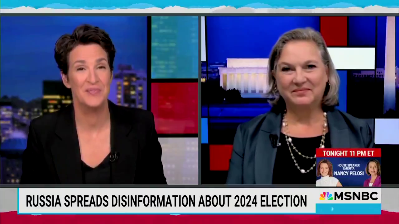 Hitler, Hitler, Hitler is failing so now it's back to Russia, Russia, Russia. It's all they know. Rachel Maddow wheeled out Victoria Nuland to declare Russia is interfering in the 2024 election.
