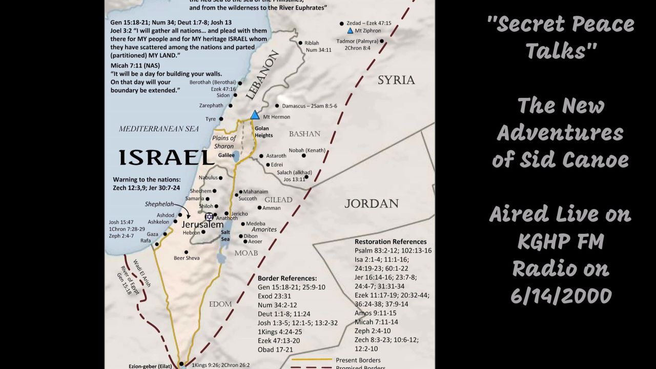 "Today our flying canoe adventure continues into the secret peace talks...yes it's good to talk about the kind of peace that I'm talking about in secret...because 'Peace through strength" is what those people are into and that as we mentioned is called 'Baal Worship' oh my goodness what did that man say on the radio? That's right, worship of a false god the god of armaments! That's why the small people are upset about things in the world today and that's why it's going to lead to anarchy one day, hey? say? huh? Don't say I didn't warn you! You heard it right here first. Yeah right..." ANOTHER PRESCIENT BROADCAST regarding JEWS RIGHT TO THE LAND OF ISRAEL, showing once again that Sid Canoe should be listened to at all universities across the globe!