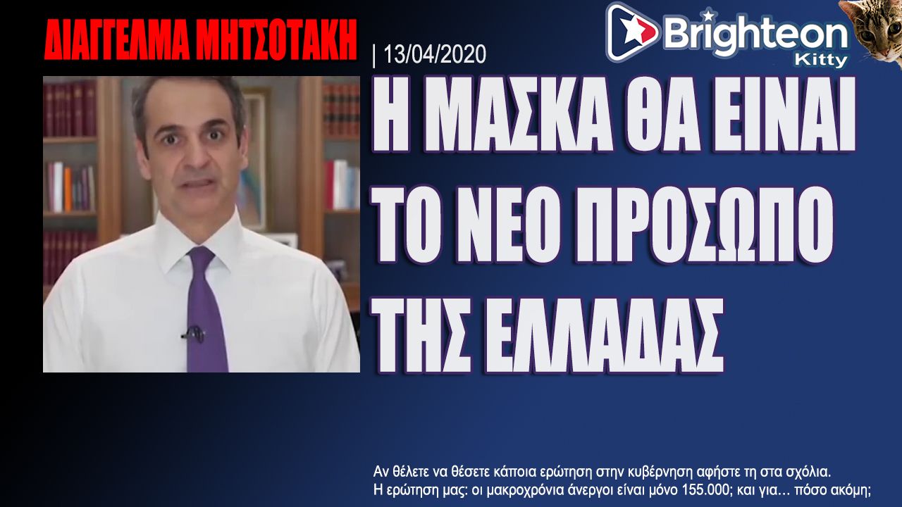 Διάγγελμα Πρωθυπουργού Μητσοτάκη. Η μασκα θα είναι το νεο προσωπο της Ελλάδας
