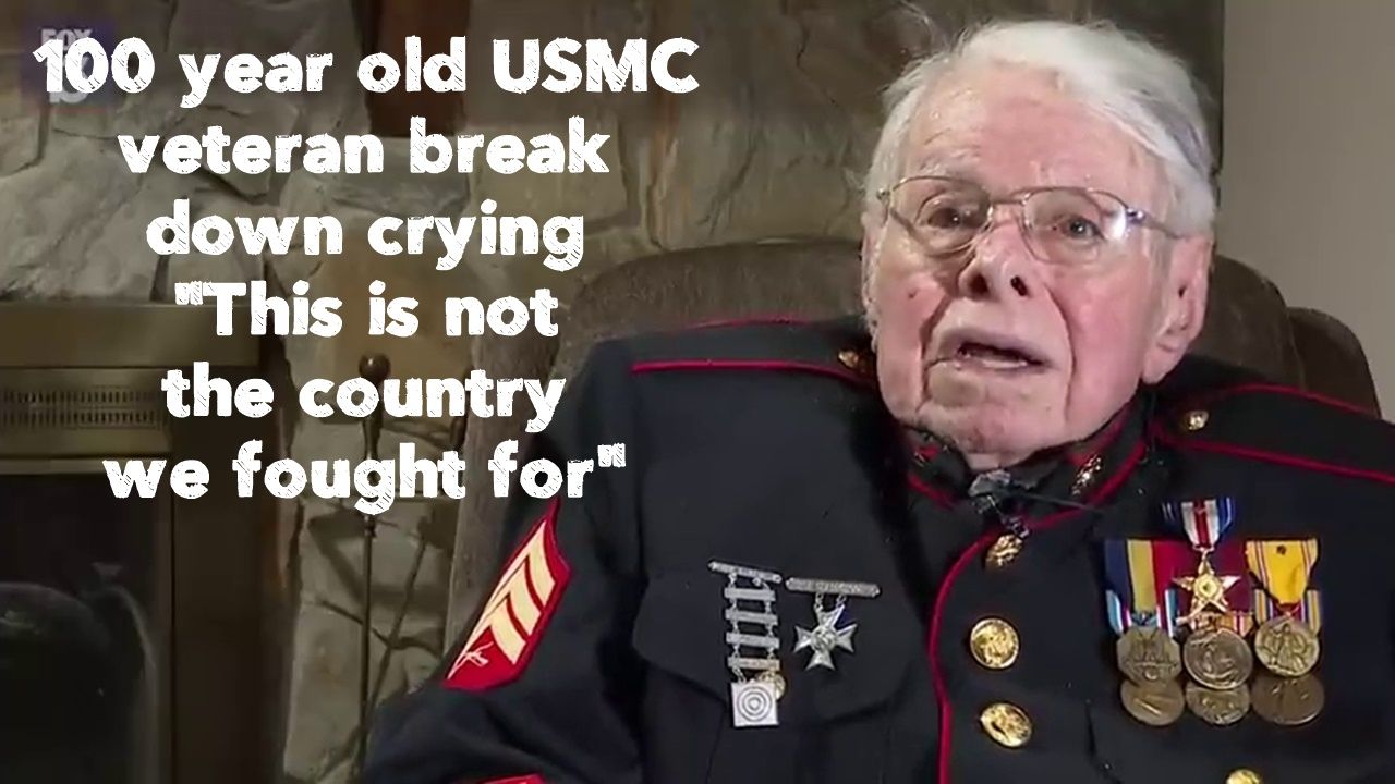 100 year old US Marine Corps veteran break down crying