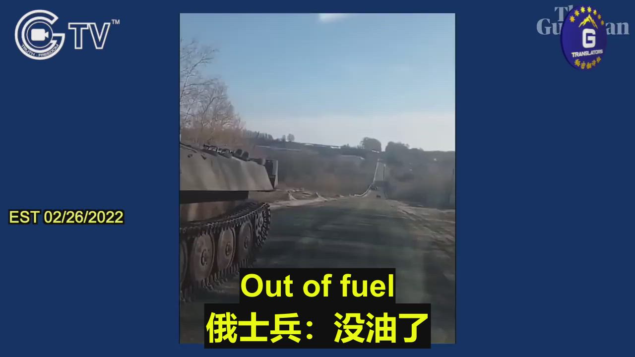 02/26/2022 A Ukrainian citizen confronted Russian soldiers after their armored vehicle broke down on a country road in the Sumy region, close to the border with Russia.