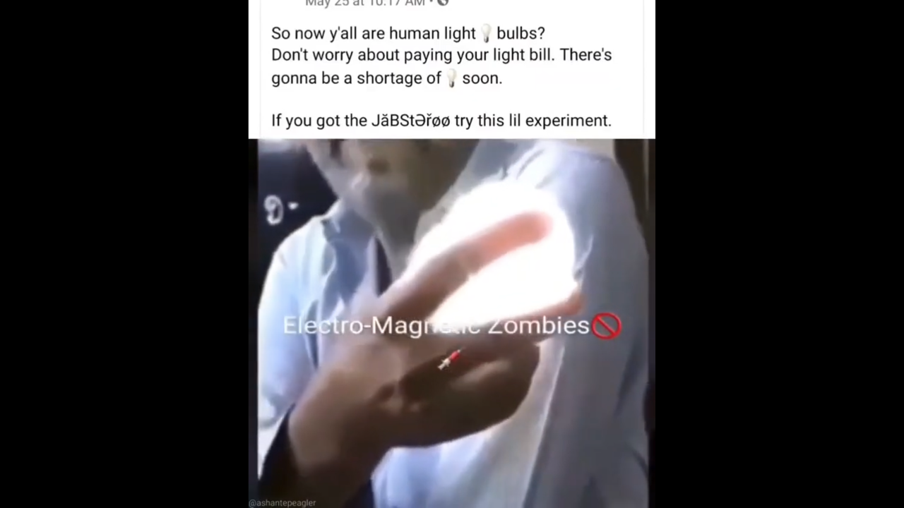 The light bulb turn on the people’s body, both vaccinated and unvaccinated ones, why ?