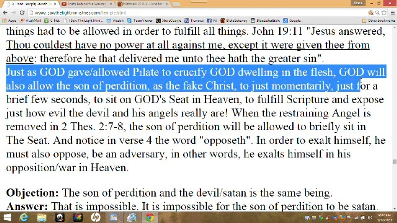 So you can think this video is incorrect all you want to due to your long held traditional beliefs, but one day soon it will become very clear that The Great Tribulation will have started and the Son of Perdition will be standing on the Temple Mount, and there will NOT be any Temple! Then you will remember when you rejected what the Scriptures say.