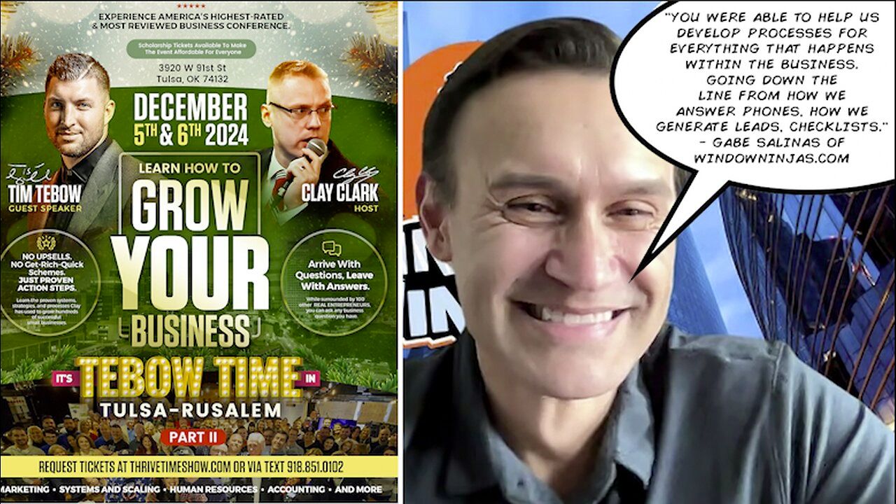 Join Tim Tebow, LIVE and in-person at Clay Clark's December 5th & 6th 2024 Thrivetime Show