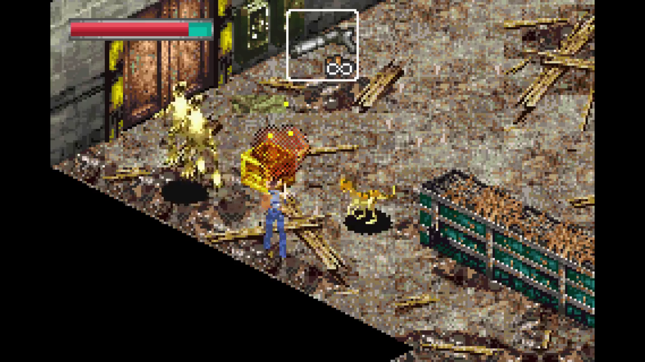 The game is played from an isometric view. You can jump, run, use your current item and switch the current item. You start off with a walkie-talkie which you can use to get hints and instructions. Later, you find a flare gun. It can only kill very tiny dinosaurs. Larger dinosaurs can be taken out by shooting a gunpowder crate when they stand close to it. Holding down the button when using a gun enables you to turn around freely on one axis for aiming. There are also other stages like an auto-scrolling motorbike ride or a side-scrolling platforming section.