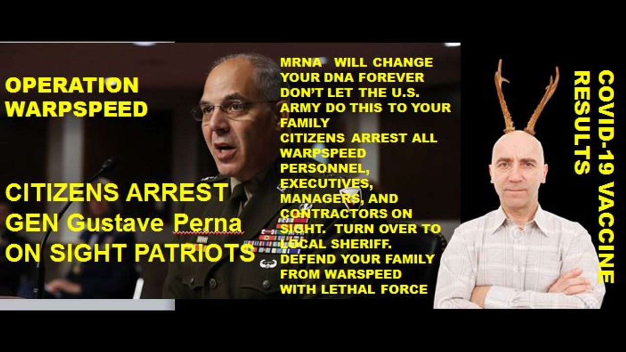IT IS GOING TO TAKE A REVOLUTION TO PUT DOWN THIS CORRUPT PENTAGON AND OPERATION WARPSPEED, AND NOW IS AS GOOD AS ANY TIME FOR THAT REVOLUTION TO BEGIN - DEFEND YOUR FAMILIES FROM THE PENTAGON GIVING ANOTHER EXPERIMENTAL VACCINE. REMEMBER ANTHRAX VACCINES AND OF 500,000 SOLDIERS, 14,000 DIED AND 13,000 BECAME 100 % DISABLED; AND SINCE THEN OVER 60 % HAVE SERIOUS SIDE EFFECTS. THE U.S. ARMY HAS A TRACK RECORD ON EXPERIMENTAL VACCINES THAT THEY USED ON OUR U.S. SOLDIERS. ARREST PERSAS ON SIGHT PATRIOTS AND TURN OVER TO LOCAL SHERIFFS. ARREST WARSPEED CONTRACTORS AND PERSONNEL FOR VACCINE BIOWEAPON TERRORISM.