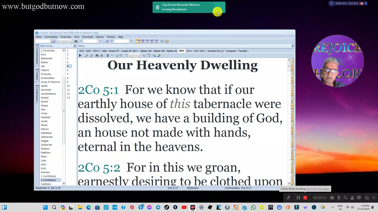 2 Corinthians 5:1 For we know that if our earthly house of this
