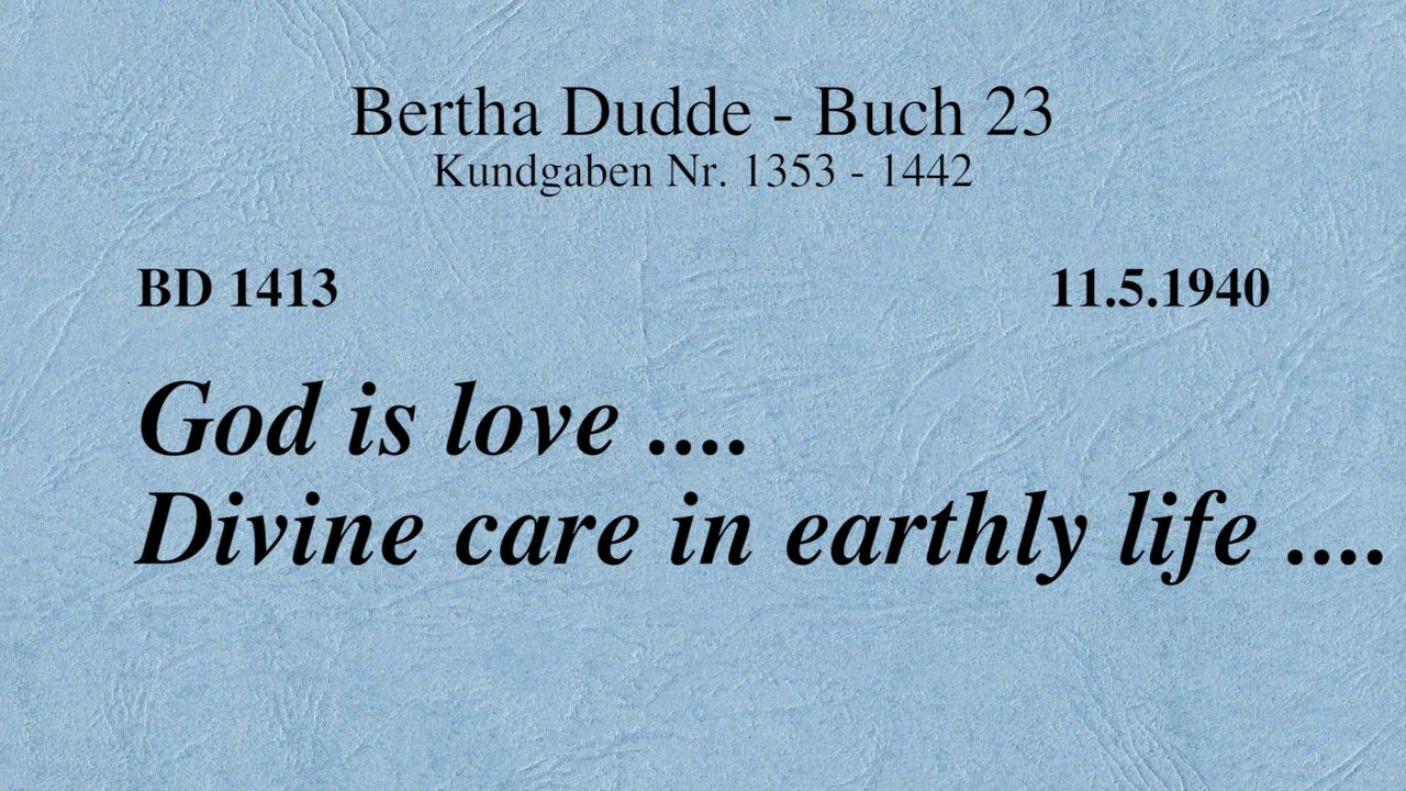BD 1413 - GOD IS LOVE .... DIVINE CARE IN EARTHLY LIFE ....