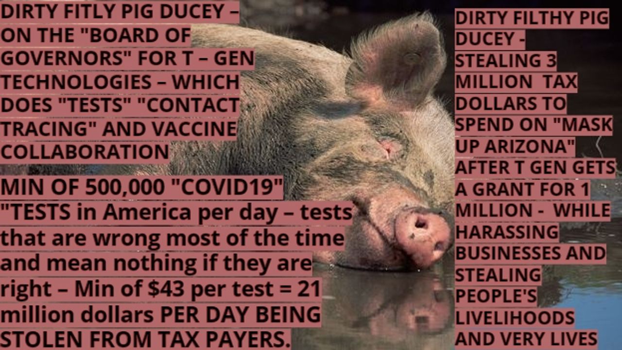 PEKING PIG DUCEY – HAS BEEN TERRORIZING MILLIONS OF PEOPLE IN ARIZONA FOR OVER A YEAR AND APPROPRIATED/STOLE ANOTHER 2 MILLION DOLLARS FOR "MASK UP ARIZONA" TO CONTINUE TO TERRORIZE AND HARASS PEOPLE AND BUSINESSES IN ARIZONA