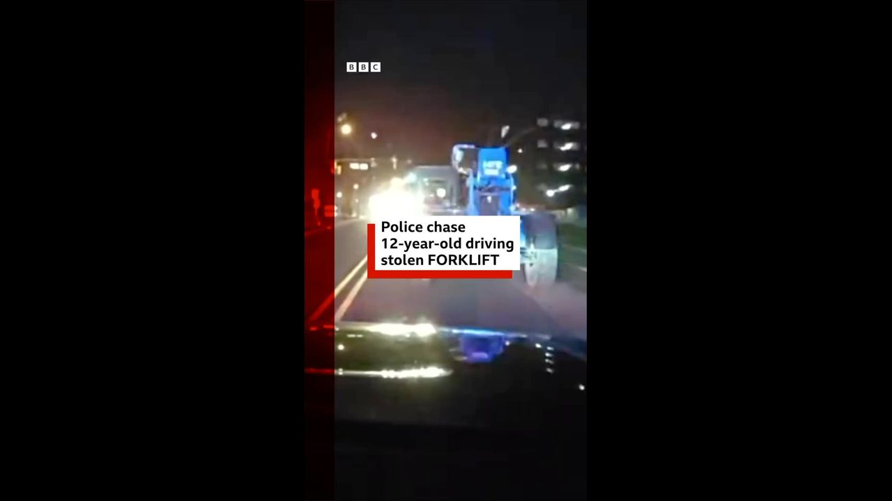 A 12-year-old boy took US police on an hour-long chase of a stolen forklift.