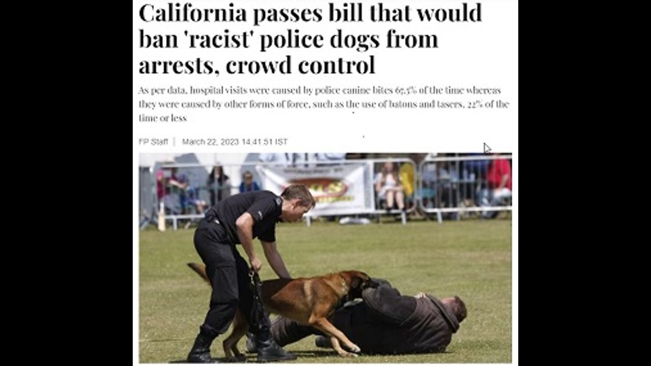The lunatics in California have passed a bill that would outlaw the use of "Racists" police canines for crowd control, arrests, and other types of interception. We talked with retired police sergeant Mark K. who was in charge of the K9 unit for over 10 years, to get his perspective on what this bill would mean if it Gavin Newsome signs it into Law.
